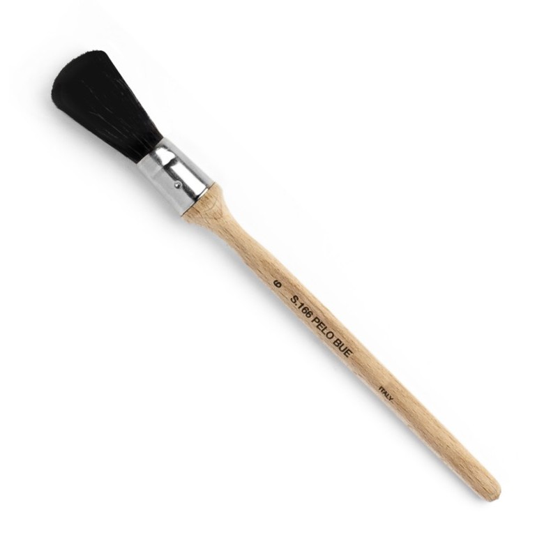 Pelo naturale bue nero. Ghiera Nichel. Manico legno grezzo.